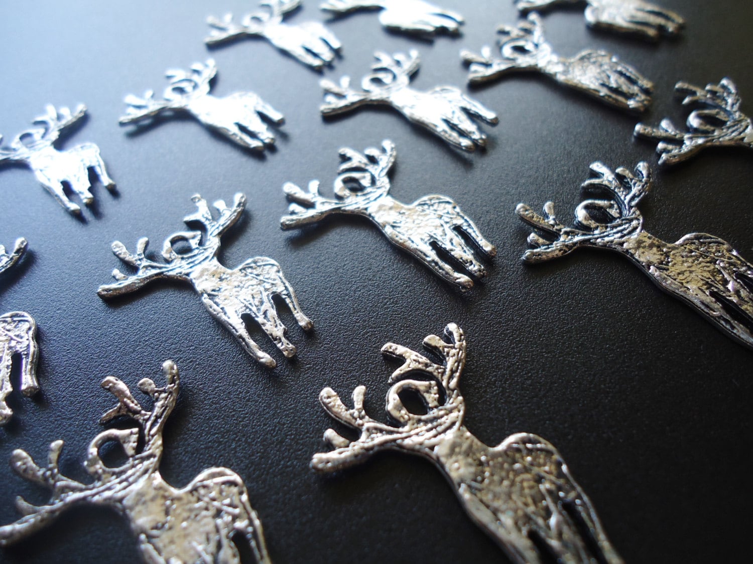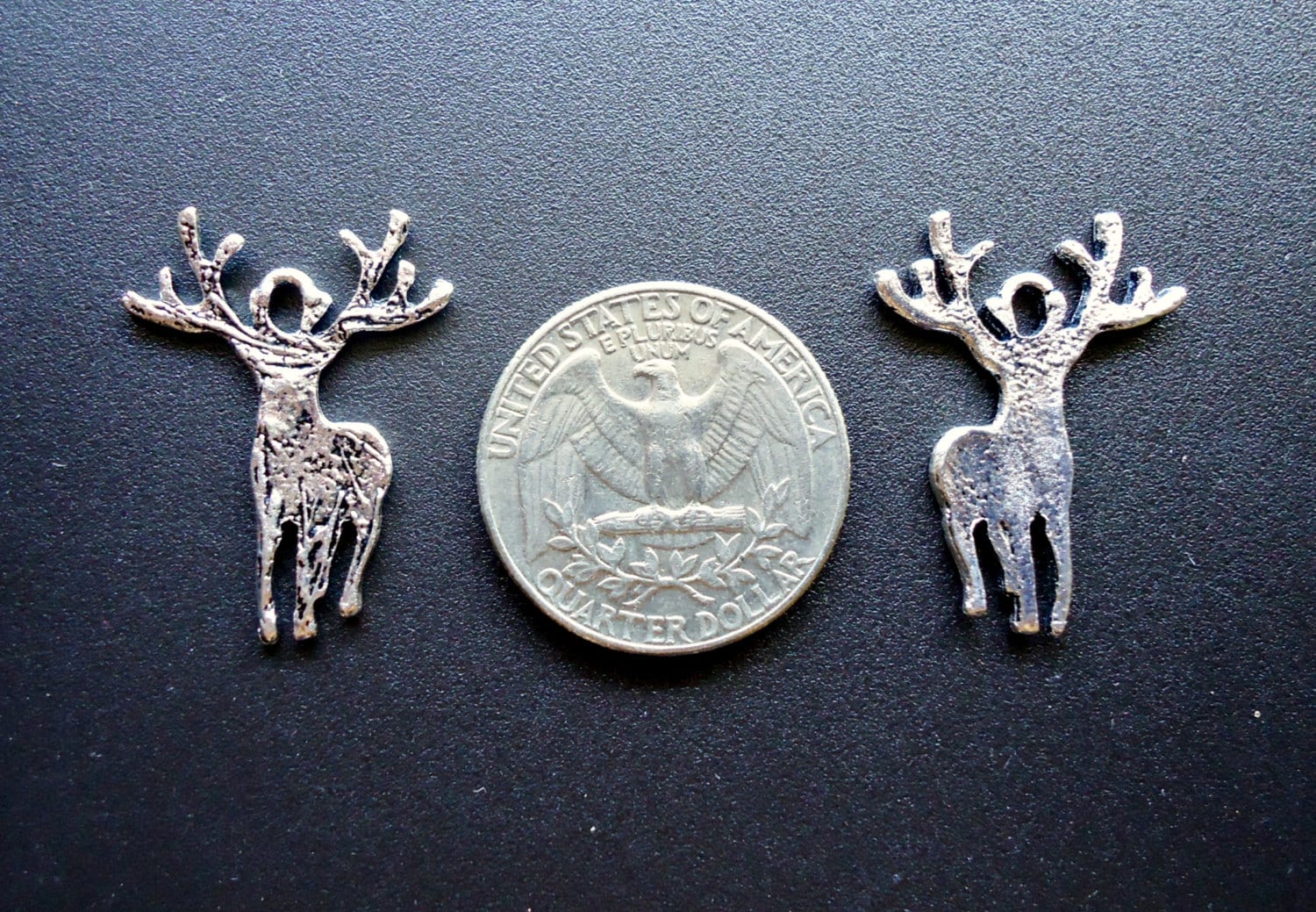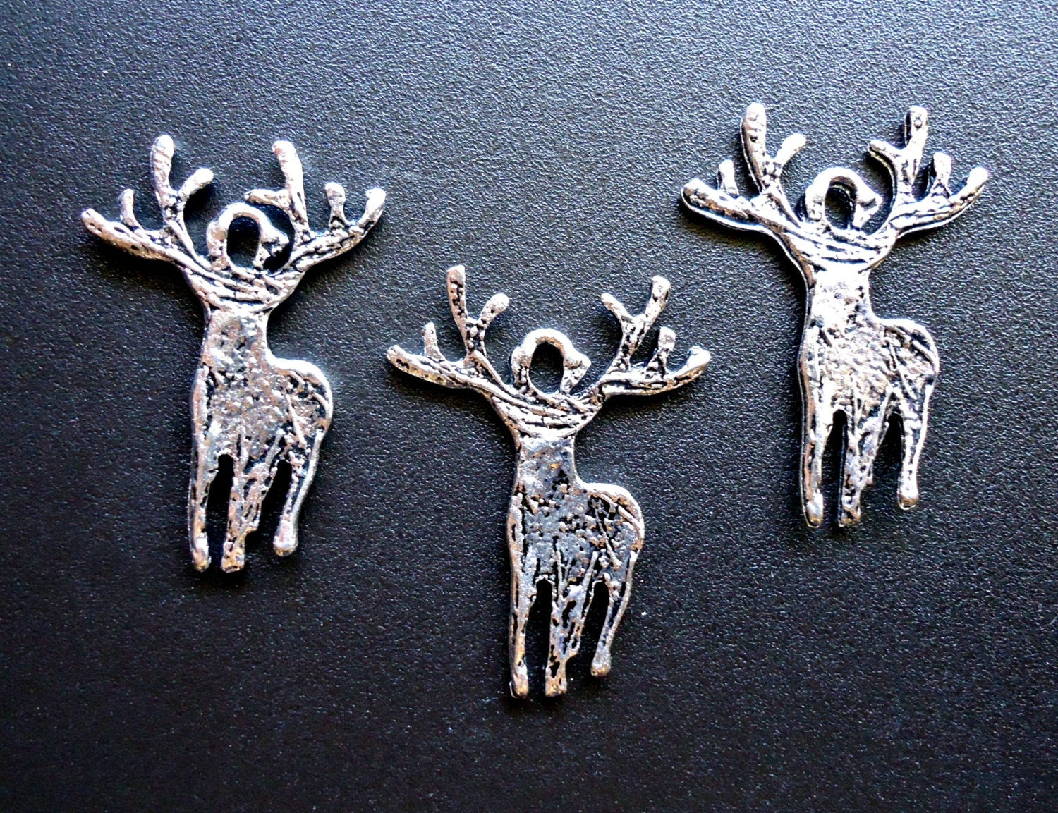 Deer / Elk with Antlers, Buck Pendants / Charms - Antique Silver