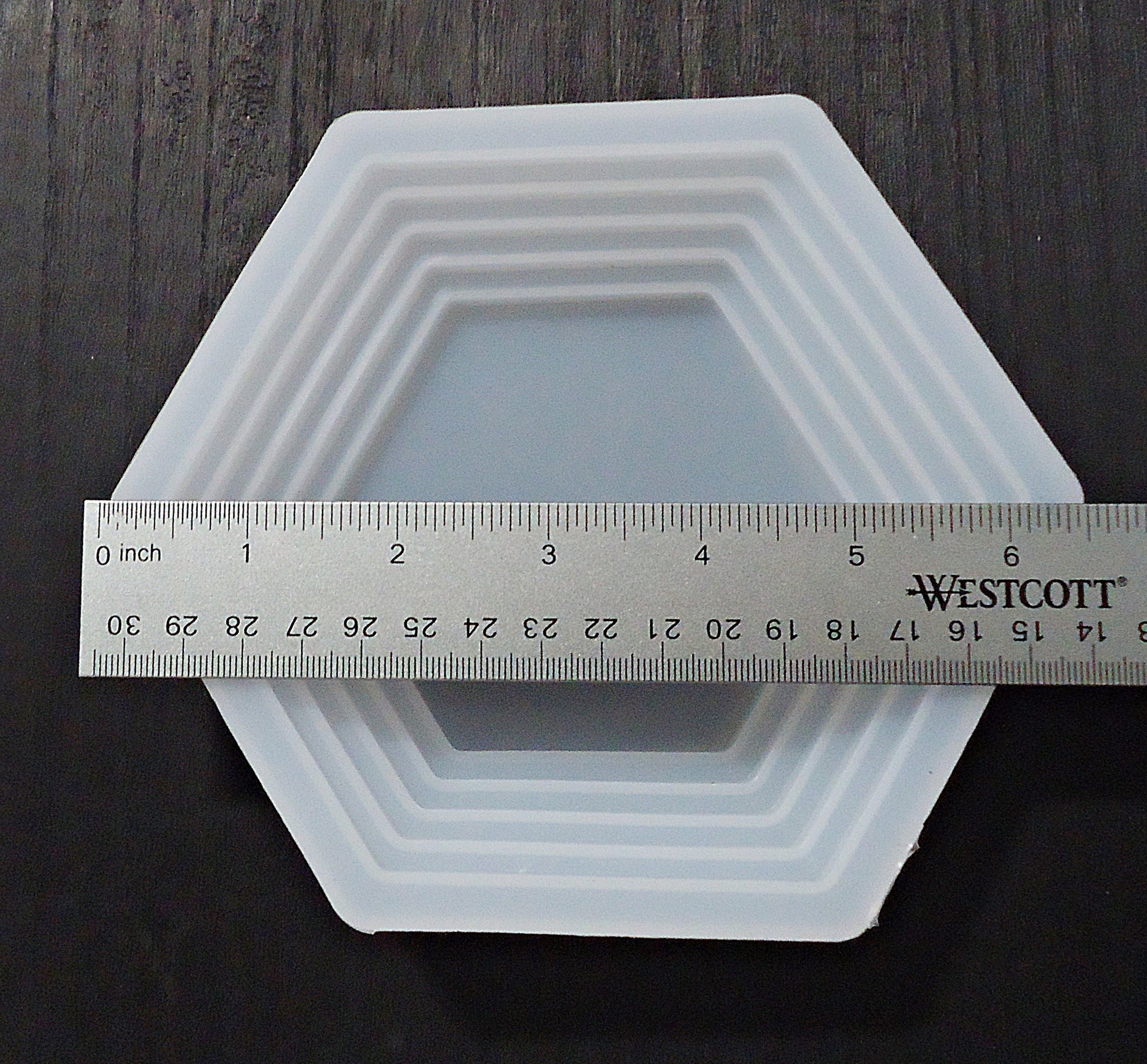 For use with Epoxy Resin, this reusable Silicone Mold will make a large, tiered Hexagon Bowl. This mold is 6.5" Wide and 1.25" Tall.