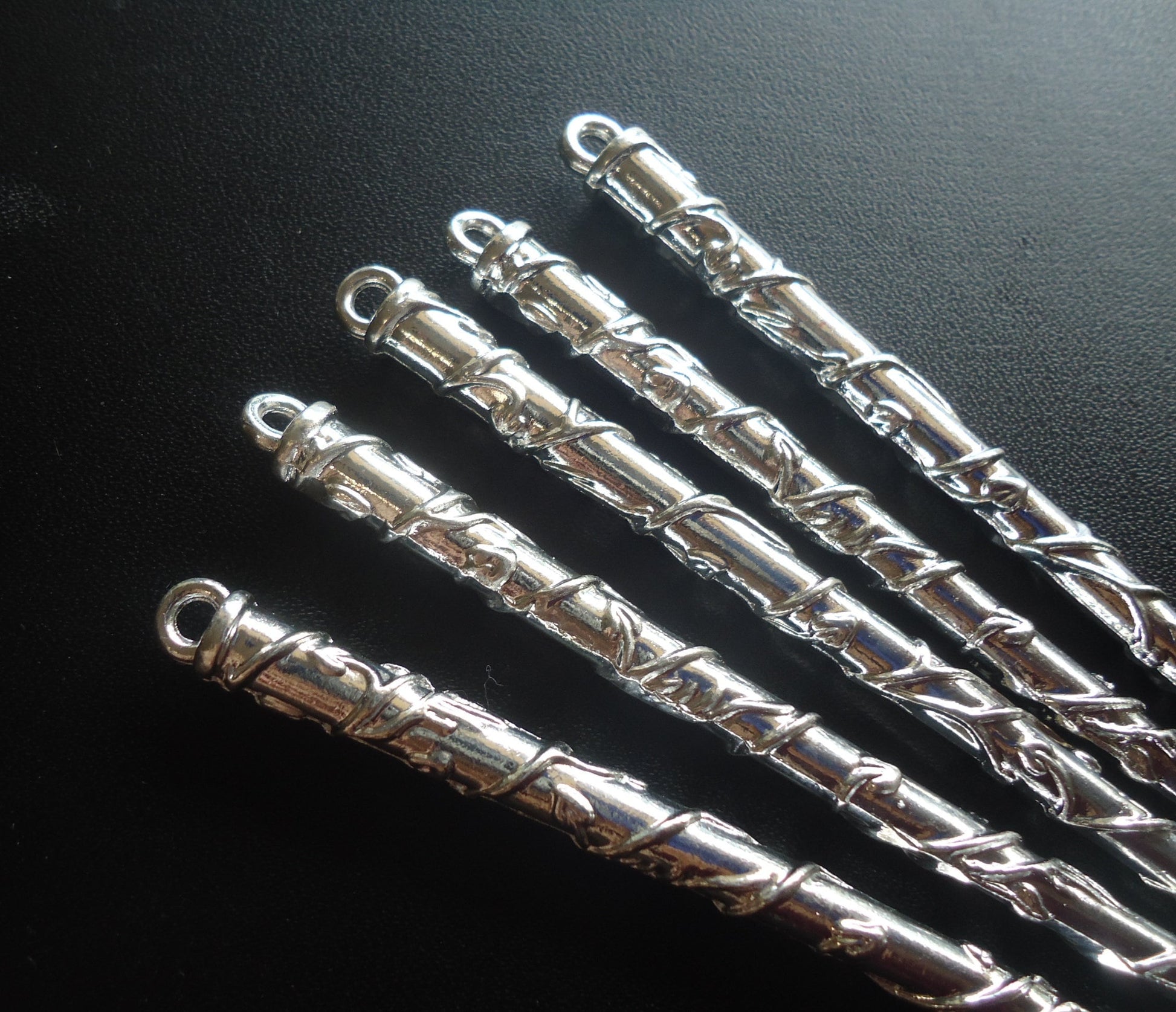 Metal Hair Sticks with Vines, 5 Inches Long, Bright Silver, Antique Silver, or Antique Bronze with Loop